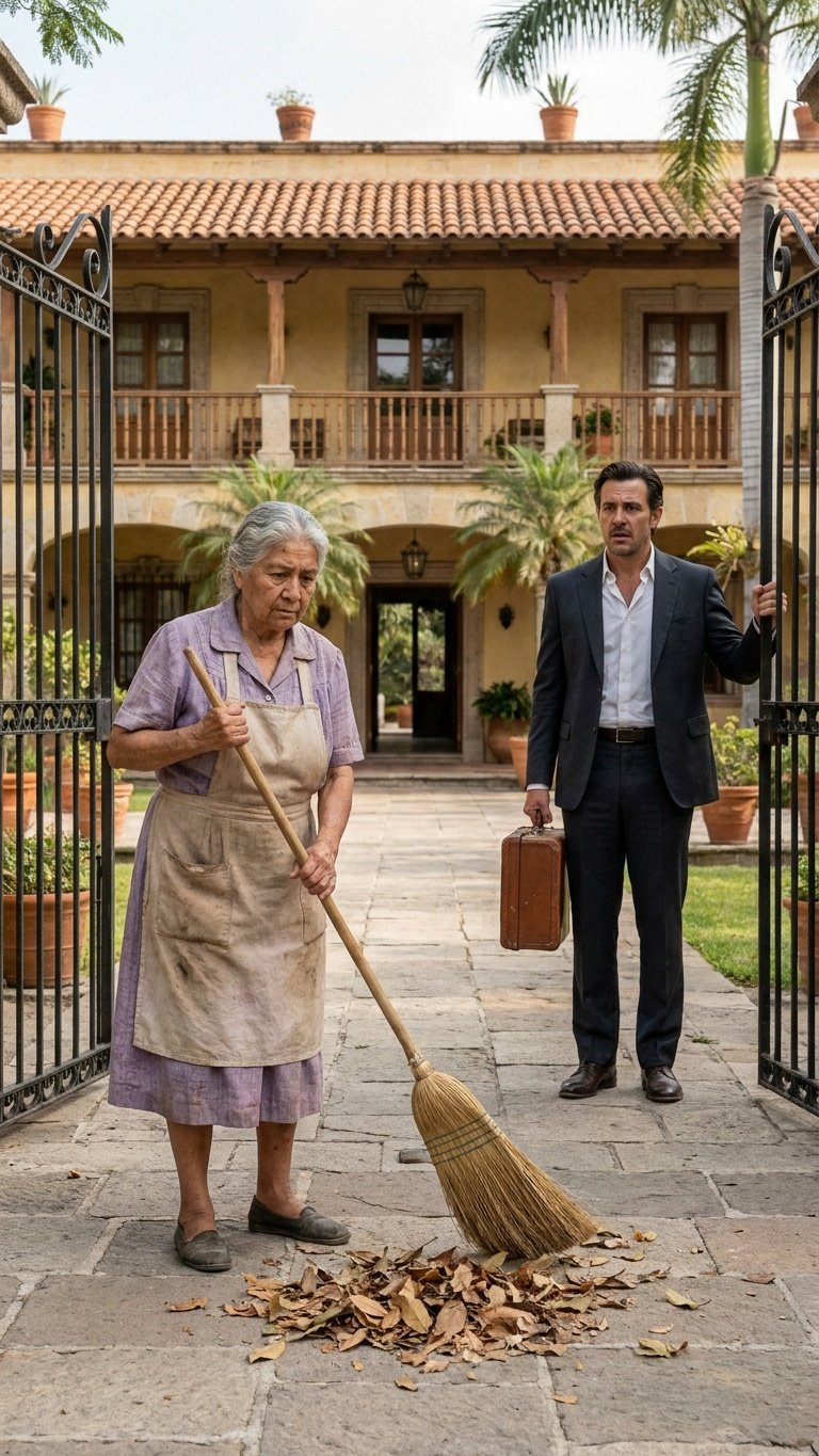 La escoba cayó de golpe sobre las piedras. Doña Carmen levantó la mirada lentamente y, al ver a su hijo, el alma se le hizo pedazos en el rostro. Sus ojos se llenaron de lágrimas de terror y vergüenza.